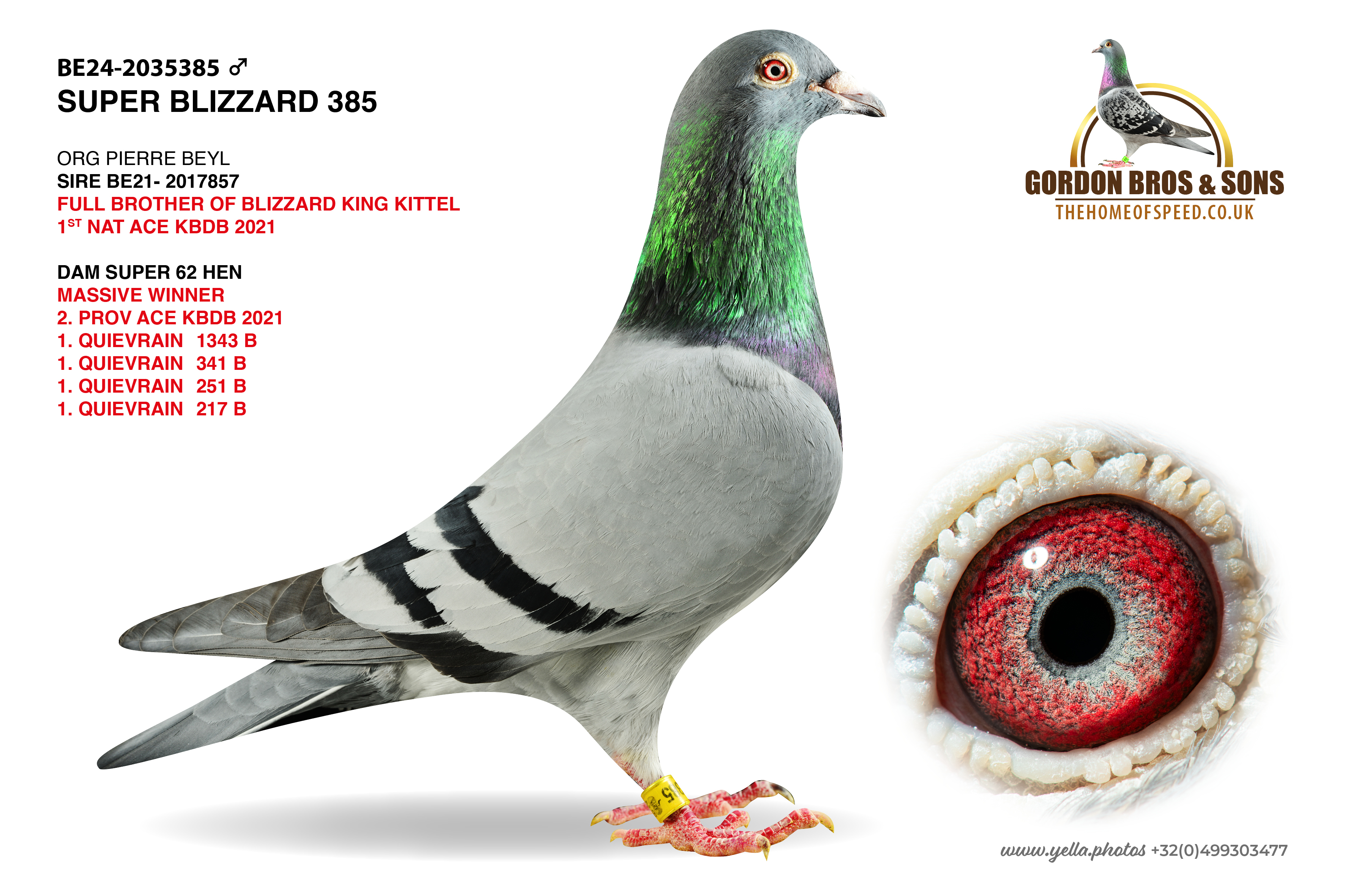 Dirk Van Den Bulck and Pierre Beyl have started to work quite closely together. You can see the best bloodlines of each respective fancier appearing in the best birds in each others loft. A classic example of this can be found with the 1st National Ace KBDB Champion “KING ARTHUR” who was bred from a Pierre Beyl cock for Dirk Van Den Bulck.